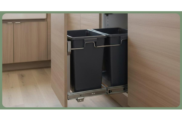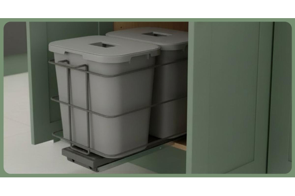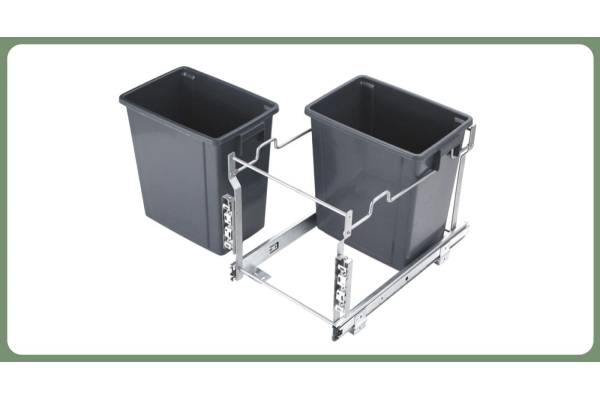 Комплектация: 2 пластиковых контейнера (2*15л), металлическая рама с креплением к фасаду, нижний монтаж, направляющие шариковые с доводчиком.