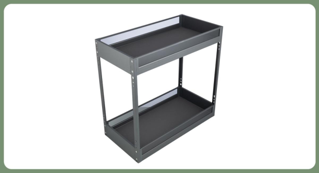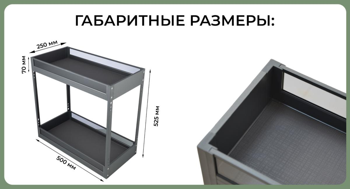 Комплектация: корзина с противоскользящим покрытием, направляющие нижнего монтажа с доводчиком,стабилизаторы устойчивости, крепеж.