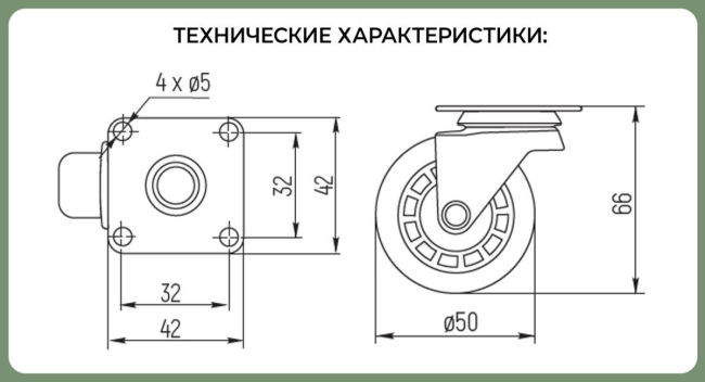 - Диаметр колеса, мм: 50