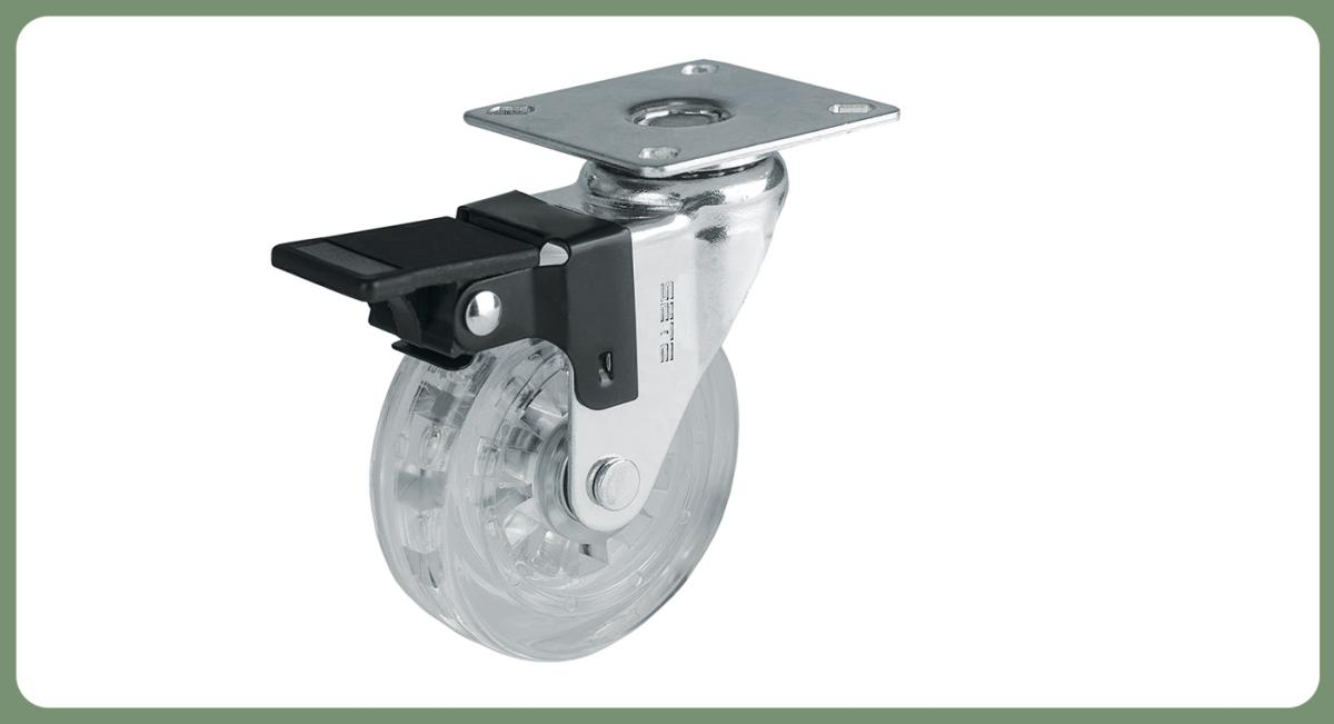 SETE Колесико силиконовое прозрачное d 75 мм, с тормозом, CS-75-B