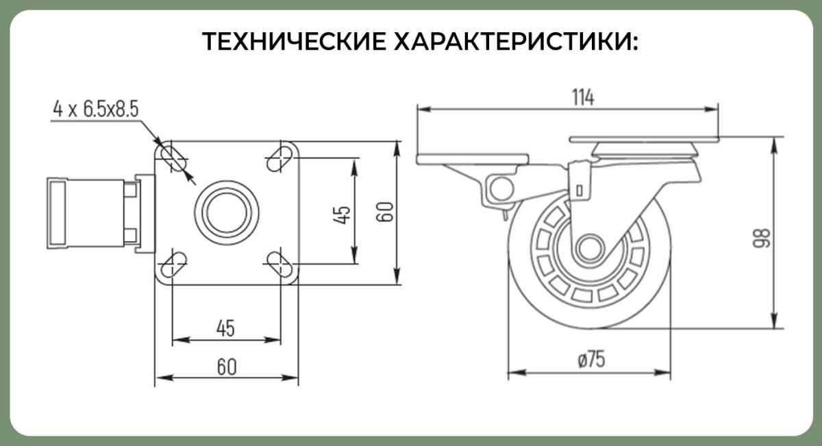 Наименование: SETE Колесико силиконовое прозрачное d 75 мм, с тормозом