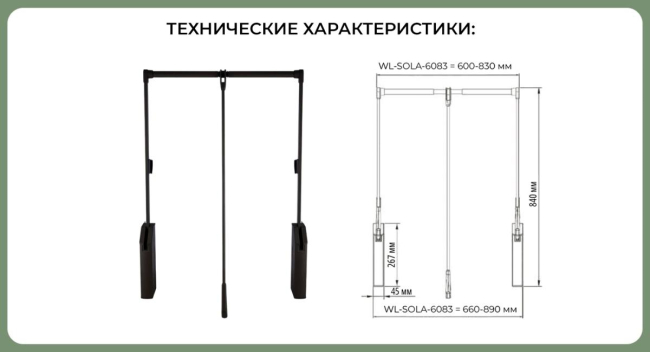 SETE Пантограф 12кг, 660-890, масляный,с доп. креплениями к стене, черный, WL-SOLA-6083-20