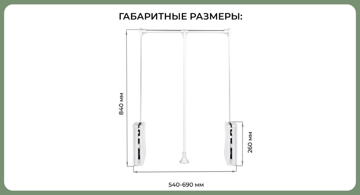 Доп. информация: Плавное доведение вверх, установка в шкаф-купе, гардеробной, а так же можно устанавливать в шкаф с распашным типом фасада.