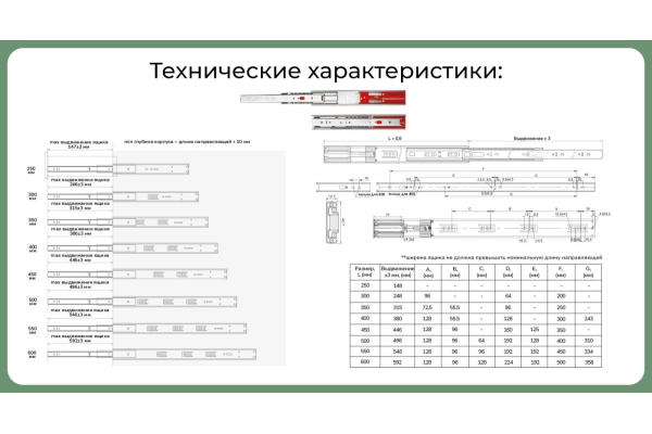 SETE Шариковая направляющая PUSH TO OPEN H45, 1,2x1,2x1,5, L550, сталь, SB-P-45550