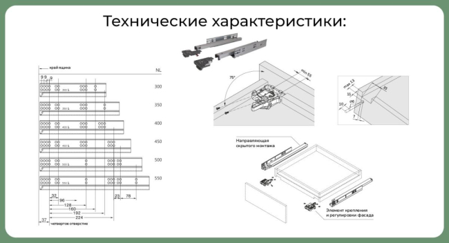 Наименование: SETE Направляющая скрытого монтажа с 3D регулировкой SLIDESET, L450,IS-450DS(10шт/к)