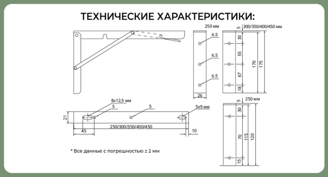 Наименование: SETE Полкодержатель складной, нержавеющая сталь, L=300