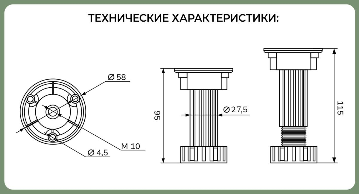 Наименование: Опора пластиковая 100 мм черная (разборная)