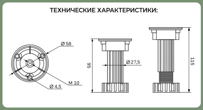 - Размеры крепления, мм: 58