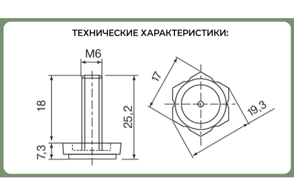 Наименование: SETE Регулируемая ножка М6 plus, сталь, пластик.NS-M6plus (втулка забивная)