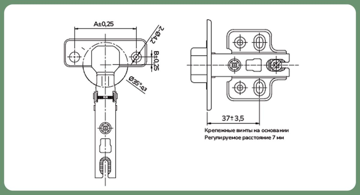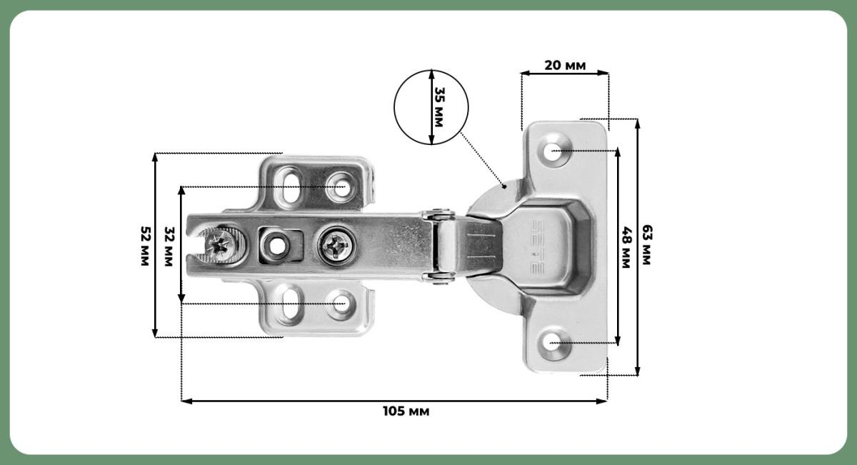 SETE Петля накладная, без евро, сталь, присадка=48, H=2, H-AP