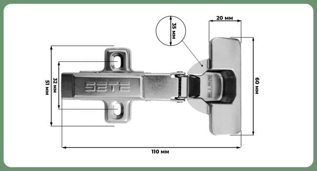 SETE Петля с доводчиком накладная, без евро, H=2, присадка=45, с декор. наклад. арт. HHC-A