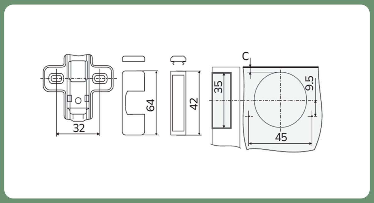 - Монтажное отверстие, мм: д.128 х ш.108 х в.65