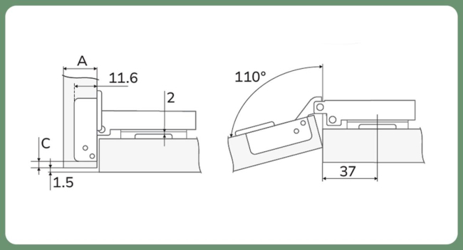 - Угол открывания: 110