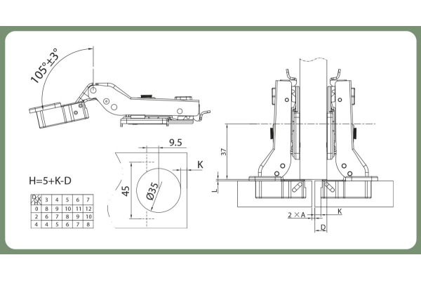 регулировка глубины 5мм / влево-вправо 5ммВ наличии- Артикул: HHC2W-BPE