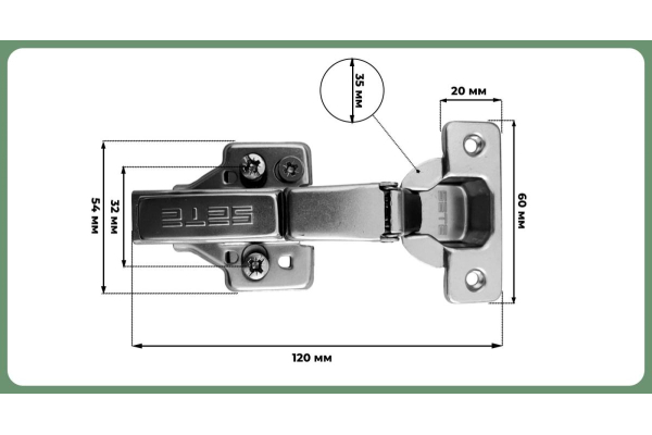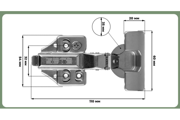 Наименование: SETE Петля с доводчиком полунакладная, 3D регулировкой