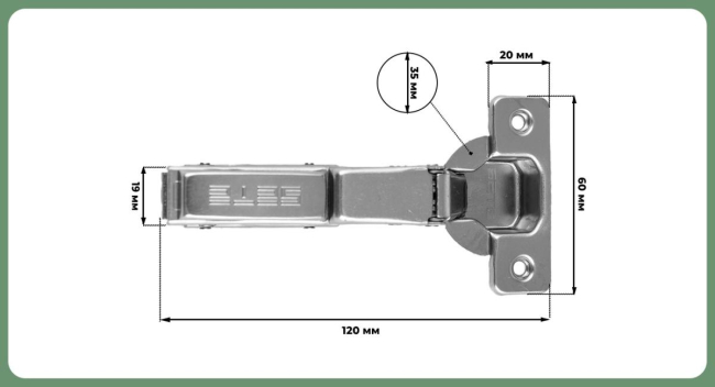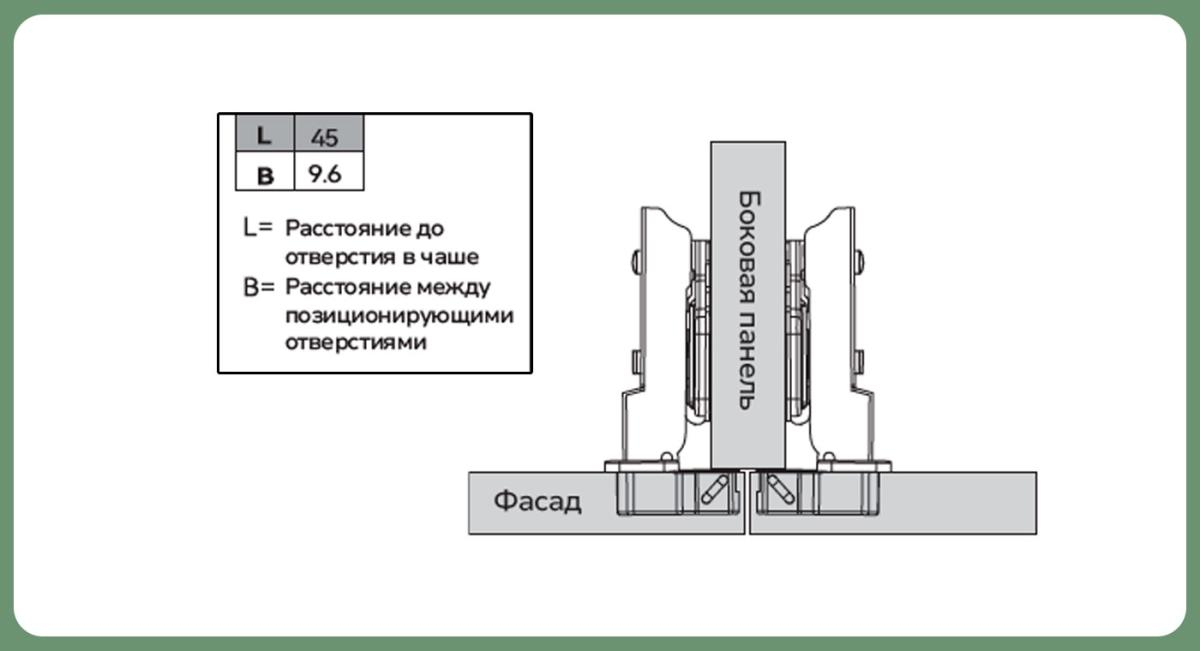 - Угол открывания: 95