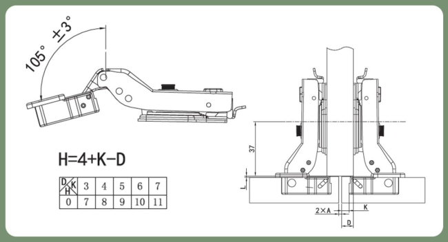 - Угол открывания: 105