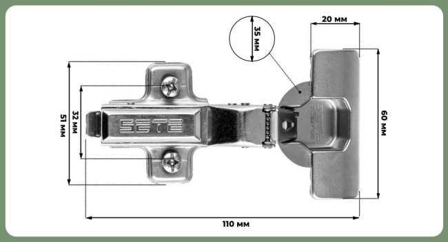 Наименование: SETE Петля с довод. PRESTIGE, 2W, полунакладная, с декор. накл., с евро