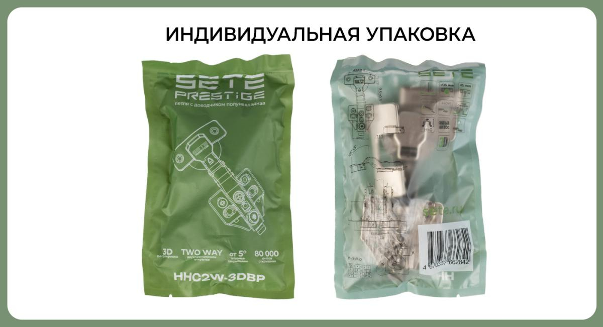 SETE Петля с довод PRESTIGE,2W,полунакл,3D,с декор наклад,без евро,пр=45,H=0,сталь,HHC2W-3DBP