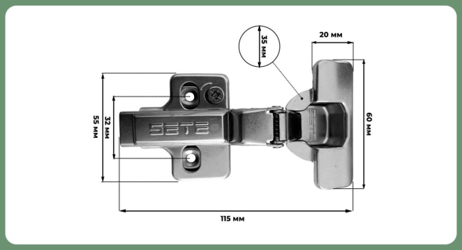 Наименование: SETE Петля с доводчиком полунакладная, 3D регулировкой