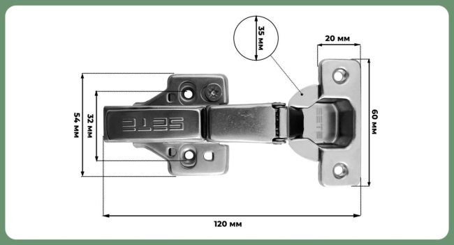 Наименование: SETE Петля с доводчиком 2W, полунакладная, 3D регулировкой,без евро