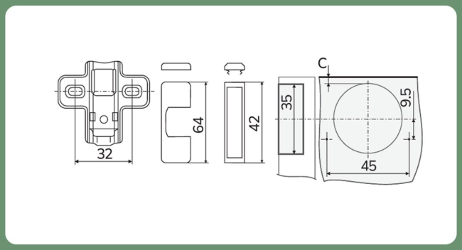 SETE Петля с доводчиком полунакладная, с евро, H=2, прис=45, с декор. накладк. арт. HHC-BE