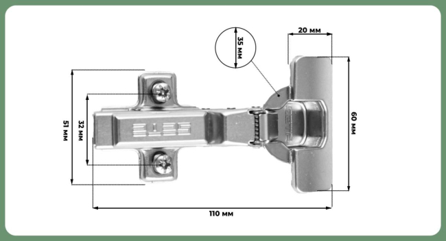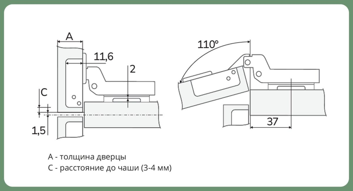 - Угол открывания: 110