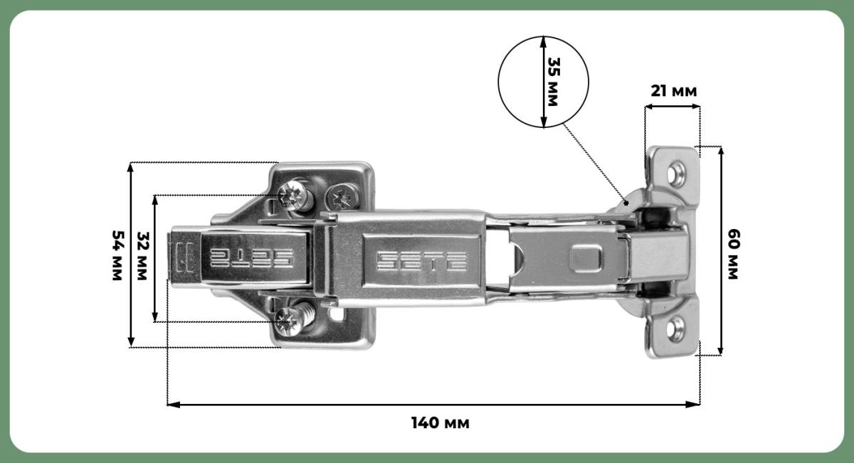 Наименование: SETE Петля с доводчиком 2W, 165°, с евро, 3D, с декор. накладками