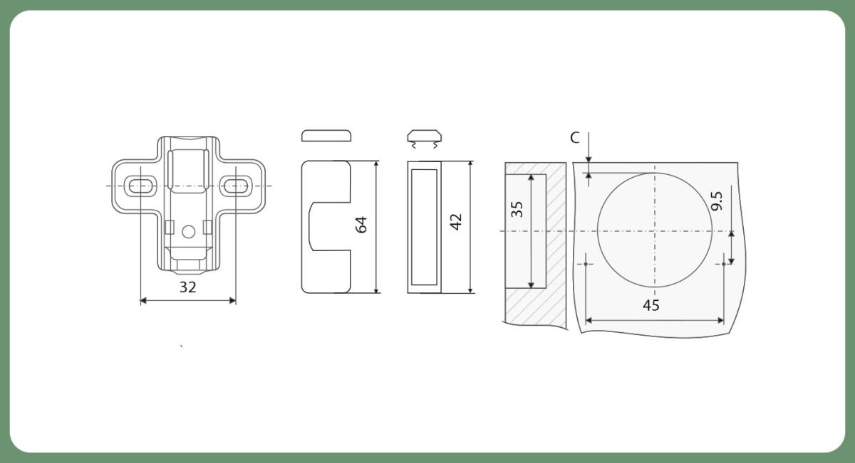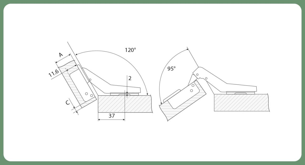 - Угол открывания: 95