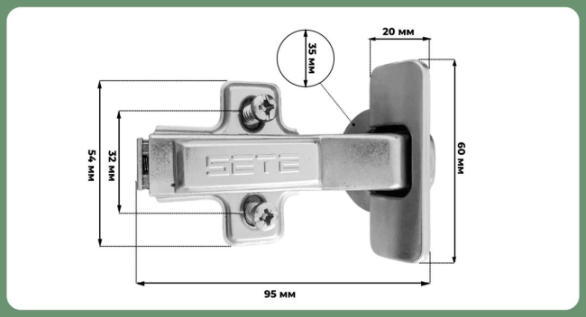 Наименование: SETE Петля с доводчиком 30°, с евро,с декор. накладками