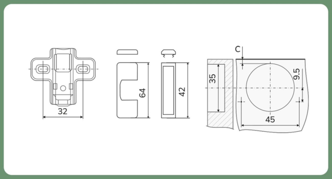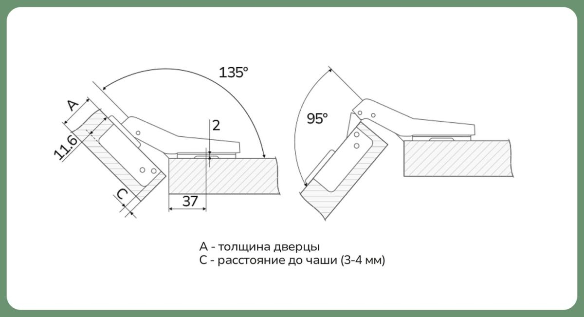 SETE Петля с доводчиком 45°, без евро, H=2, присадка=45, арт. HHC-45