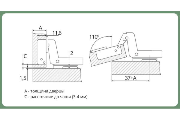 Наименование: SETE Петля с доводчиком 2W, вкладная, 3D, без евро