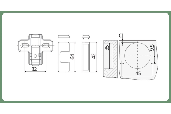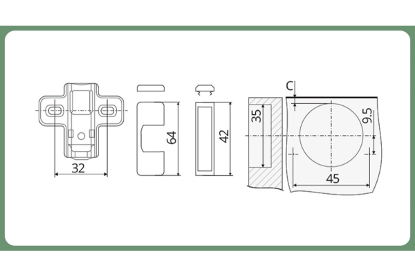 SETE Петля с доводчиком вкладная, с евро, регул. 3 пл., H=2, присадка=45, арт. HHC-3DCE