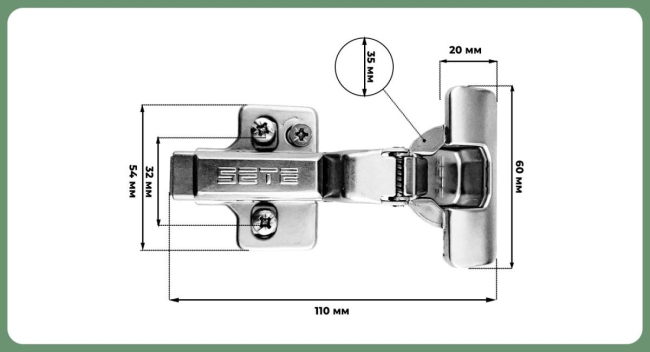 SETE Петля с доводчиком вкладная, с евро, регул. 3 пл., H=2, присадка=45, арт. HHC-3DCE