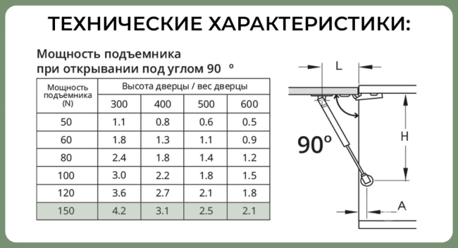 SETE Подъемник газовый 150N, серебро, сталь арт. GL-150N