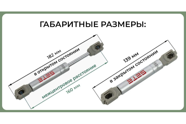 SETE Подъемник газовый мини, 160мм, 60N, серебро, сталь арт. GL-60160