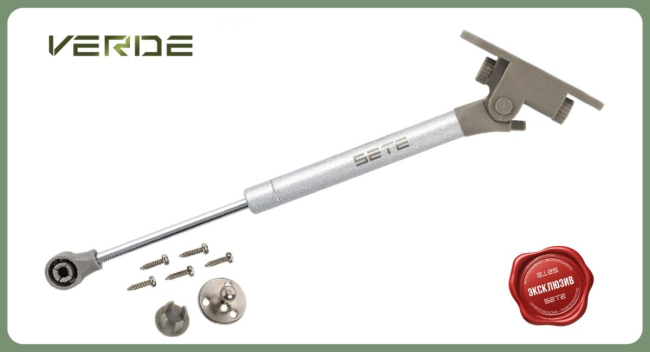 SETE Подъемник газовый с двойным доводчиком VERDE, 150N, серебро, сталь, GL-VERDE-150N