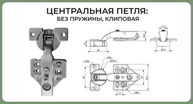 1) Петля центральная без пружины, Clip On
