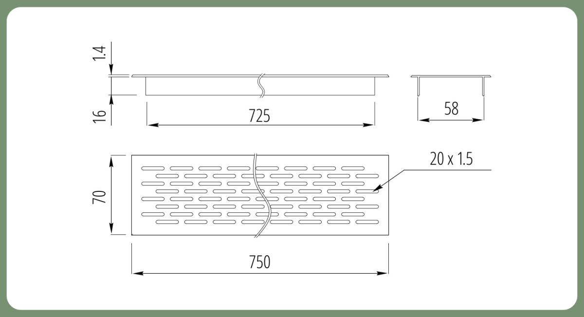 Наименование: SETE Вентиляционная решетка 70*750, матовое золото