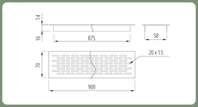 SETE Вентиляционная решетка 70*900, алюминий, арт. VG-70900-05