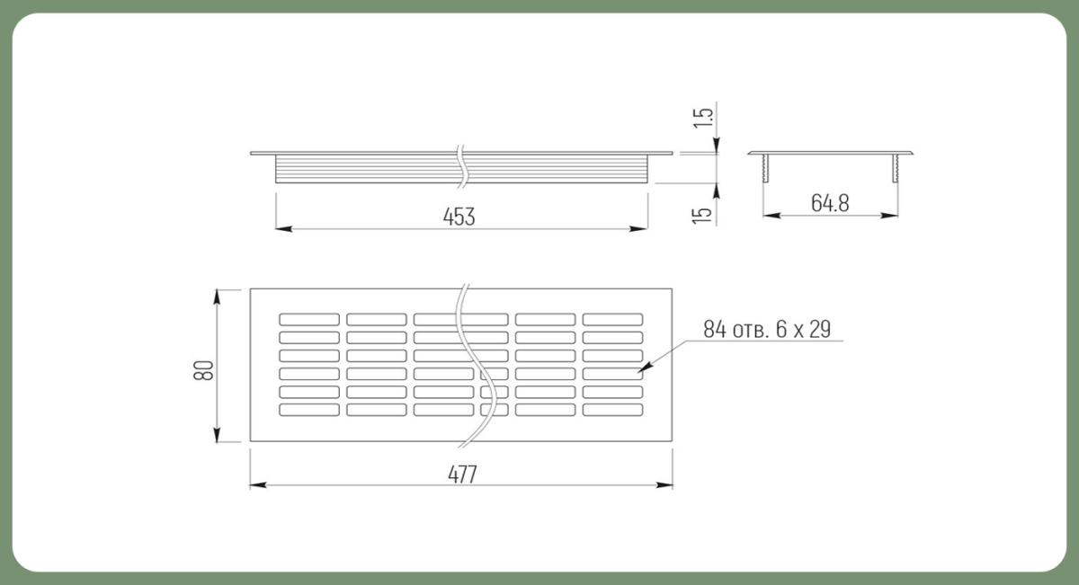 Наименование: SETE Вентиляционная решетка 80*480, черный, VG-80480-20 100шт/кор