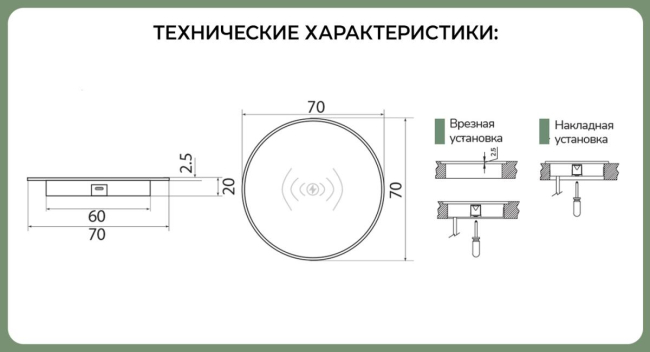 Наименование: SETE Беспроводная зарядка, круглая, белый (25шт/кор) SBT-RCH-10