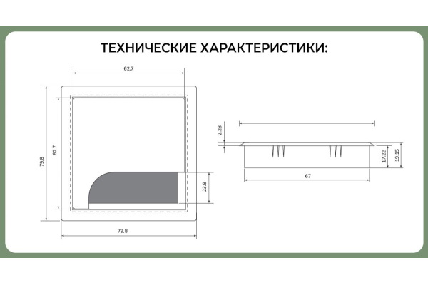 Монтажное отверстие, мм: 67х67