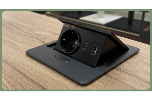 SETE Встраиваемый удлинитель,1 гнездо, 1USB, 1 type C, беспров. зарядка, черный, SBT-1UCWT-20