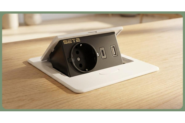 SETE Встраиваемый удлинитель,1 гнездо, 1USB, 1 type C, беспров. зарядка, белый, SBT-1UCWT-10
