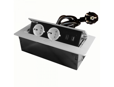 SETE Встраиваемый удлинитель, 2 гнезда, 1 USB, 1 type C, с кабелем, серый, SBT-2UCTN-80 9шт/кор