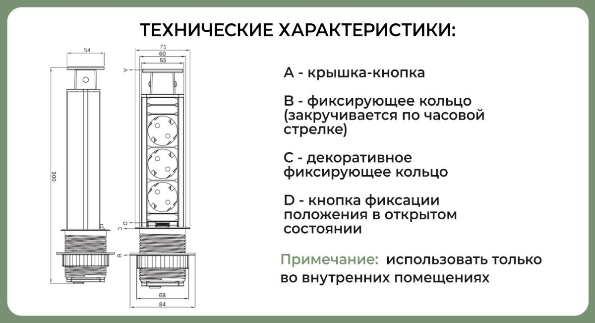 - Монтажное отверстие, мм: 300 х 60