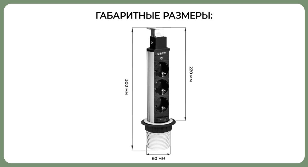 Наименование: SETE Удлинитель настольный выдвижной, 230V,60mm,серый, SPO-3G