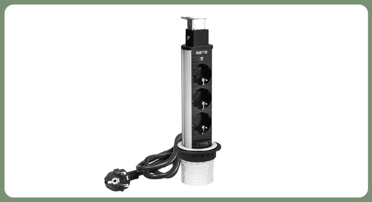 SETE Удлинитель настольный выдвижной, 230V, 60mm, серый, арт. SPO-3G