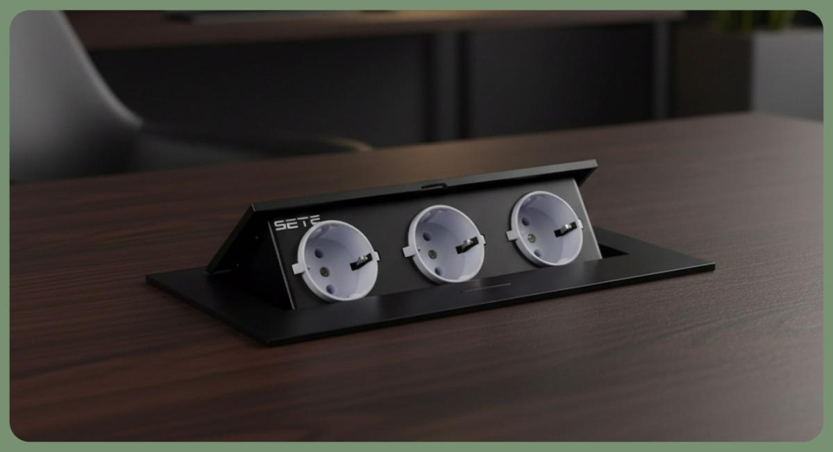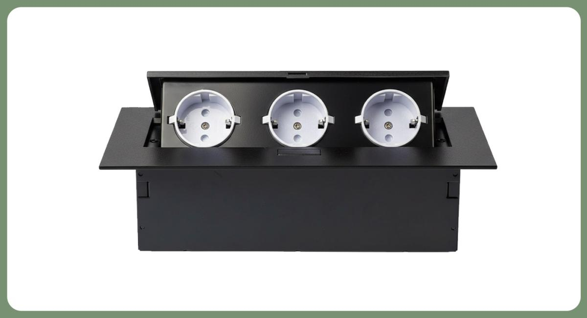 SETE Встраиваемый настольный удлинитель, 3 гнезда, без кабеля, черный, арт. SBT-03-20